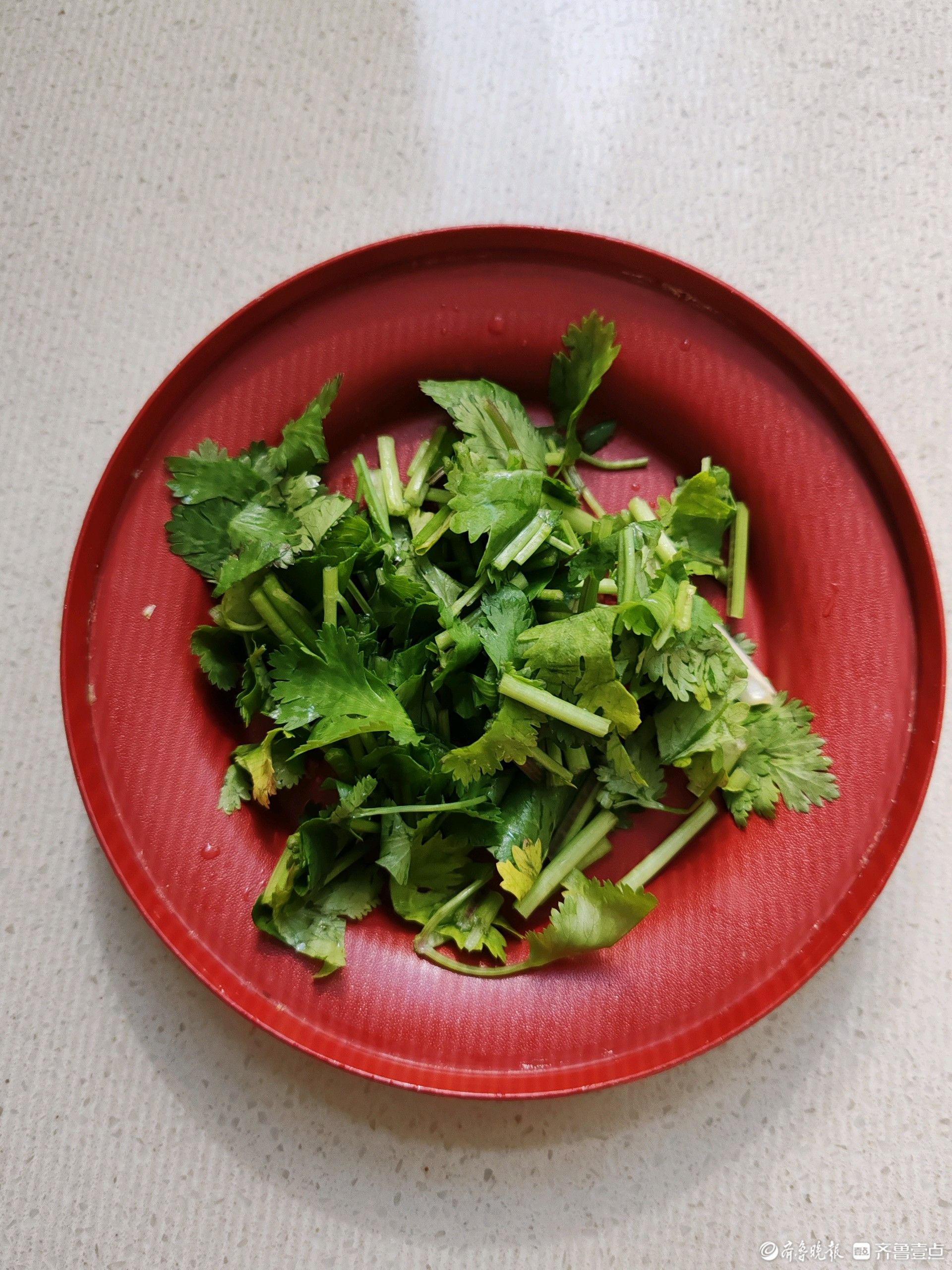 2、葱切丝,姜切片,蒜切片,香菜切段。红辣椒切圈备用。