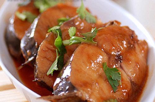 4、锅里留底油烧热,放葱姜蒜、花椒粒、爆香,然后放适量甜面酱,慢火炒出红油,放适量料酒,生抽,老抽,红辣椒翻炒均匀,把鲅鱼放入锅里,再倒入清水没过鱼块,大火烧开后转小火炖20分钟,放松茸鲜调味,放点香菜,收汁装盘即可。