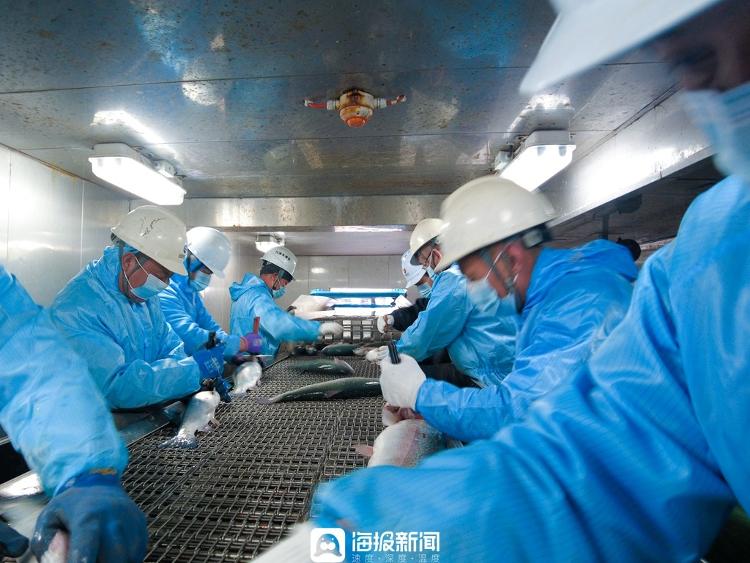 “24小时‘游’全国,48小时上餐桌。”山东万泽丰海洋开发集团(下文简称“万泽丰”)总裁刘海滨介绍,从“深蓝2号”下渔网、工船吸鱼到运到(日照)近岸,现场加工,再到整鱼装箱转运,全程采用低温中转云仓体系,最快30多个小时就可以送达国内主要城市。