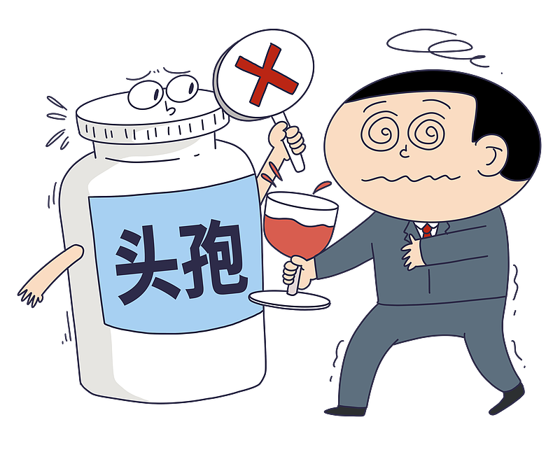 大部分头孢类药物都含有类似双硫仑化学结构的甲硫四氮唑基团,若在服药前后饮酒,可能会导致双硫仑样反应。双硫仑样反应包括面部潮红、结膜充血、视物模糊、头颈部血管剧烈搏动或搏动性头痛、头晕、恶心、呕吐、呼吸困难、惊厥,甚至死亡等。