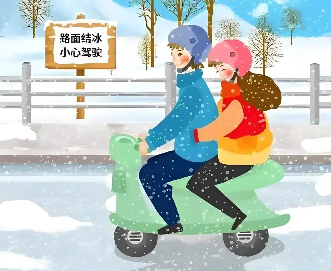 驾驶电动车、摩托车出行时要减速慢行,与前车保持足够的安全距离。注意前方和周边路况,尤其是立交桥下、隧道口等易结冰路段。