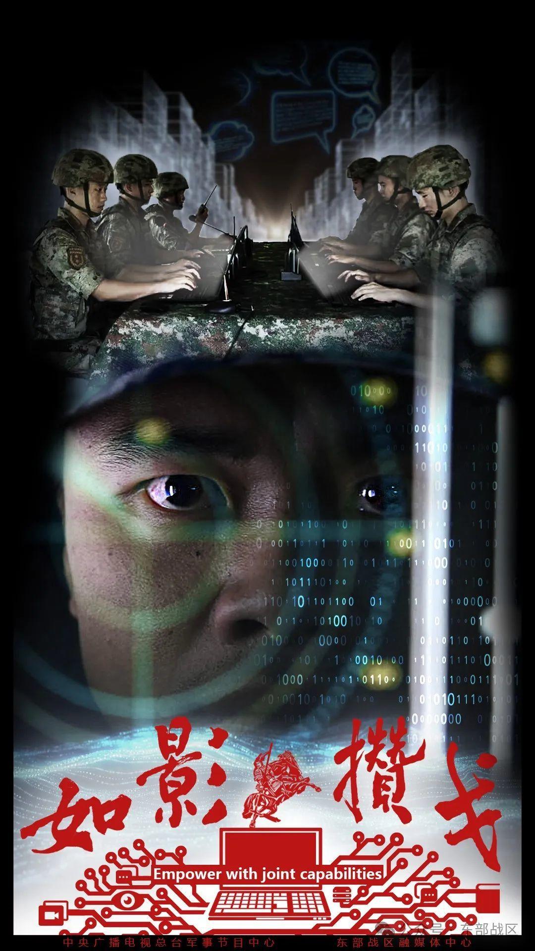 此次海报延续了解放军东部战区一贯的“繁体字+英文”表达,指向意味和胸怀格局不言自明。其中,海报《如影攒戈》的中英文翻译暗藏玄机。单从画面来看,图中映射的数据流、剪纸中的电脑和电路图,让人不禁猜测这是否代表解放军新成立的信息支援部队,但“joint capabilities”译为“联合能力”,“攒”也就更多带有“攥指成拳”的意味。张军社表示,“如影攒戈,决不单指网络空间力量的积攒,而是强调用无形的手将有形的力量汇聚起来,这个‘无形’就是解放军网信聚能和数智赋能的科技实力,正是‘海陆空火仗吴钩,如影随形汇铁流’。”