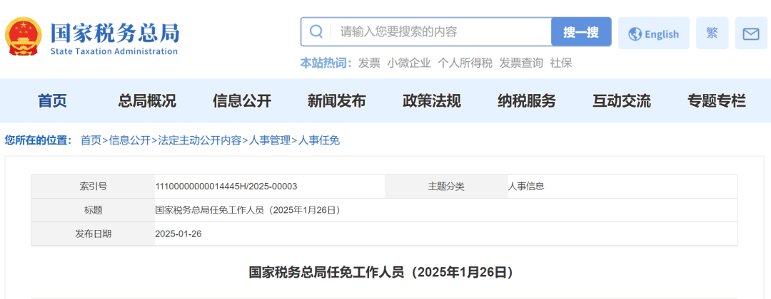 国家税务总局发布人事任命,2位厅级干部履新山东省税务局