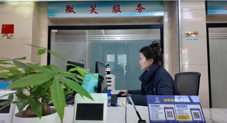 服务大厅里,工作人员守在窗口,为市民提供咨询及业务办理