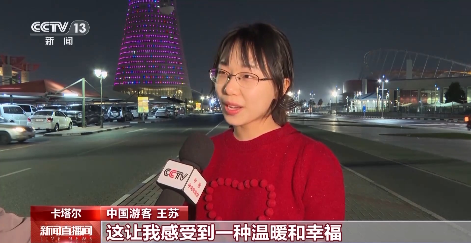 中国游客 王苏:在卡塔尔的地标性建筑上看到“中国红”,看到中国汉字“欢乐春节”,这让我感受到一种温暖和幸福,同时也有一种深深的自豪感。