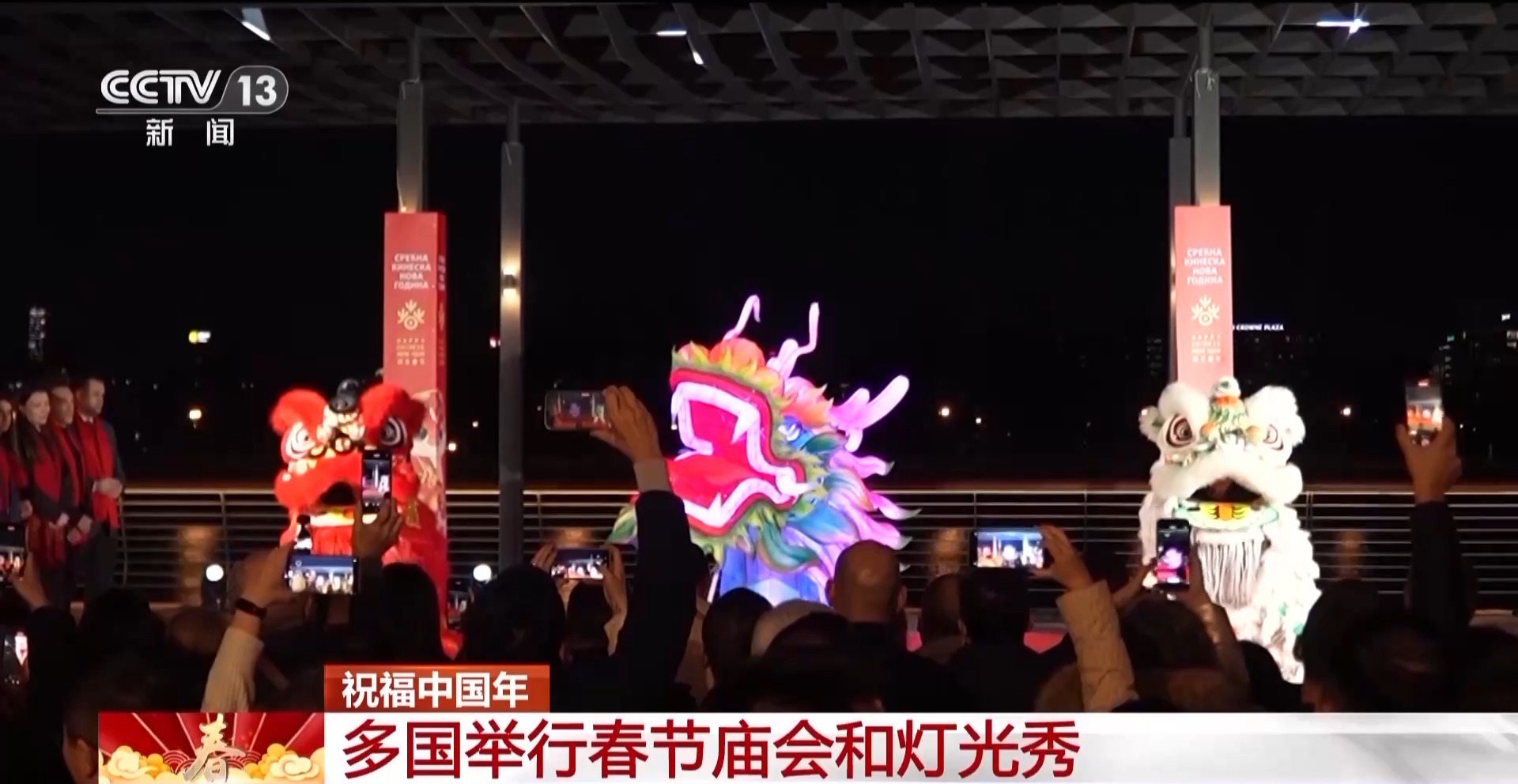当地时间28日晚,塞尔维亚首都贝尔格莱德在灯光秀和烟花表演中迎来了2025年“欢乐春节”庙会。舞龙舞狮、书法等中国非遗表演轮番上演,庙会还设有中华传统美食摊位,让贝尔格莱德市民品味地道的中国年味。此外,由塞尔维亚艺术家组织的中国灯展也于当晚开幕。