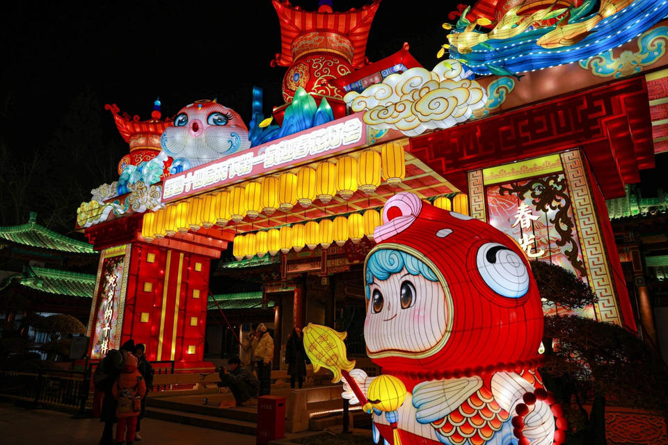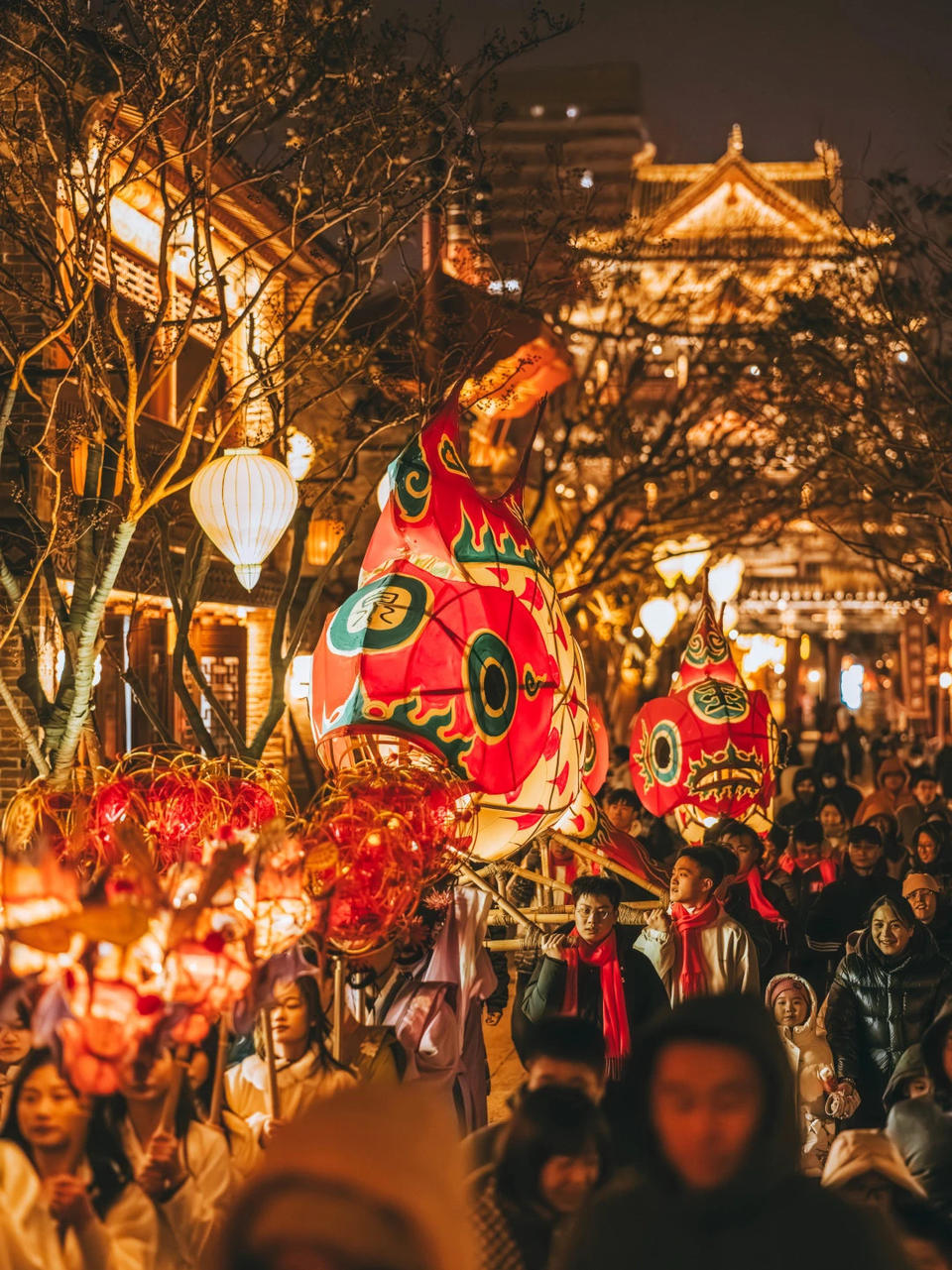 大年初一正是全家出动赏花灯的好时机,花灯作为重要的新年氛围元素,一直是传统景区的重头戏。济南市文化和旅游局推出《济南灯会地图》,市民游客可以跟着地图打卡流光溢彩的花灯。第44届天下第一泉迎春花灯会在趵突泉、大明湖、五龙潭、护城河四大区域,分别打造“赶灯季”“烟雨湖”“漫时光”“晚回舟”四大主题花灯,各式花灯既有传统文化的精髓又不失现代时尚感,互动体验区的猜灯谜、制花灯等活动深受游客喜爱,最近火爆出圈的“湖畔雨荷”更是成为新晋网红打卡地标;千佛山景区“登高祈福·祥蛇献瑞——2025年千佛山新春游园会”今日启幕,景区北广场、主山路区域、文昌阁和历山院4组新年花灯精彩亮相。此外,印象济南·泉世界最美花灯会打造“鲤鱼跃龙门”为主题花灯,济南方特东方神画打造巨型年味灯组,丰富多彩的蛇年主题灯会,让游客感受浓浓新春氛围。