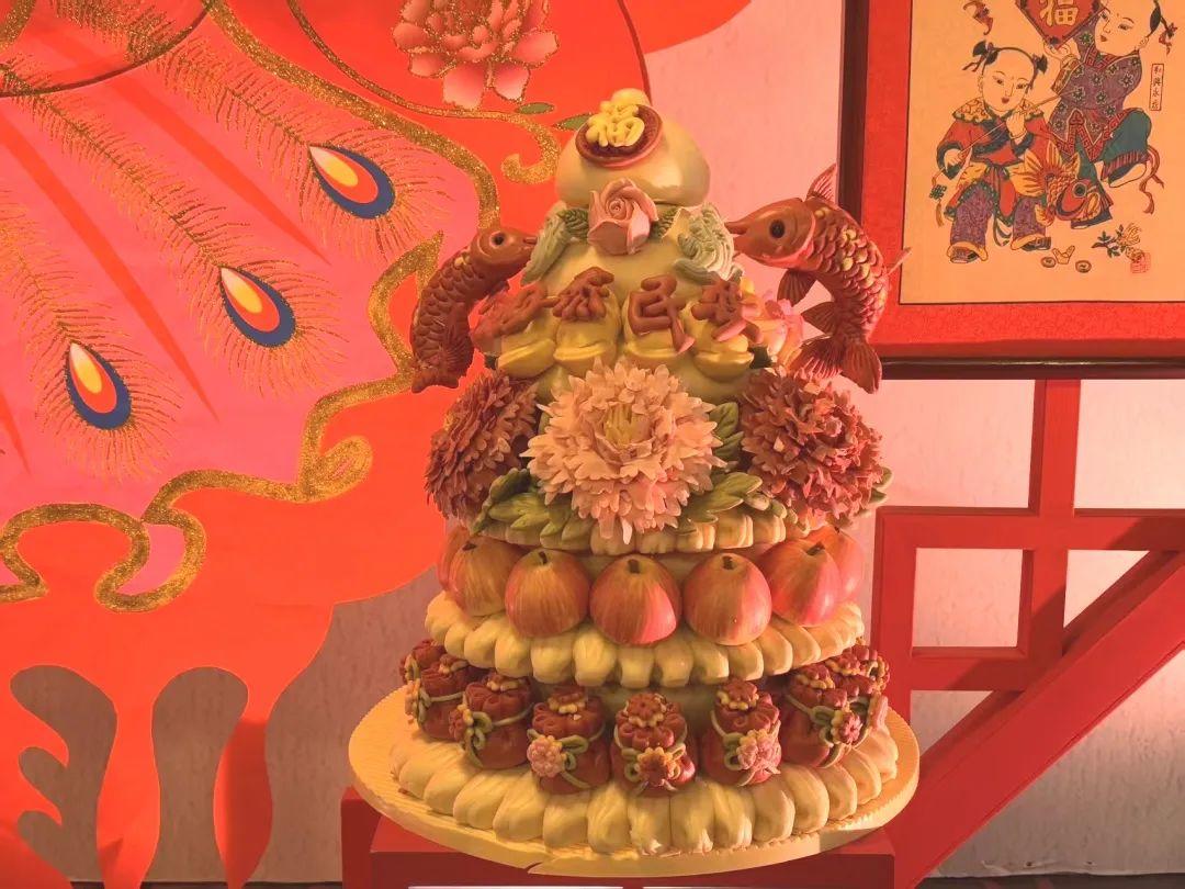 晚会采取非遗市集与舞台主秀节目结合的方式,呈现不同非遗代表性项目特色。在非遗市集中,莱芜锡雕、杨家埠木版年画、潍坊风筝、青州花毽、胶东花饽饽习俗、郯城木旋玩具、沂蒙煎饼、东昌葫芦雕刻等8个项目亮相,展现齐鲁特色非遗瑰宝。郯城木旋玩具代表性传承人樊士伟、沂蒙煎饼代表性传承人徐海霞在互动环节,向全国观众介绍非遗代表性项目亮点与特色,送上欢乐祥和、富贵花开的新春祝福。