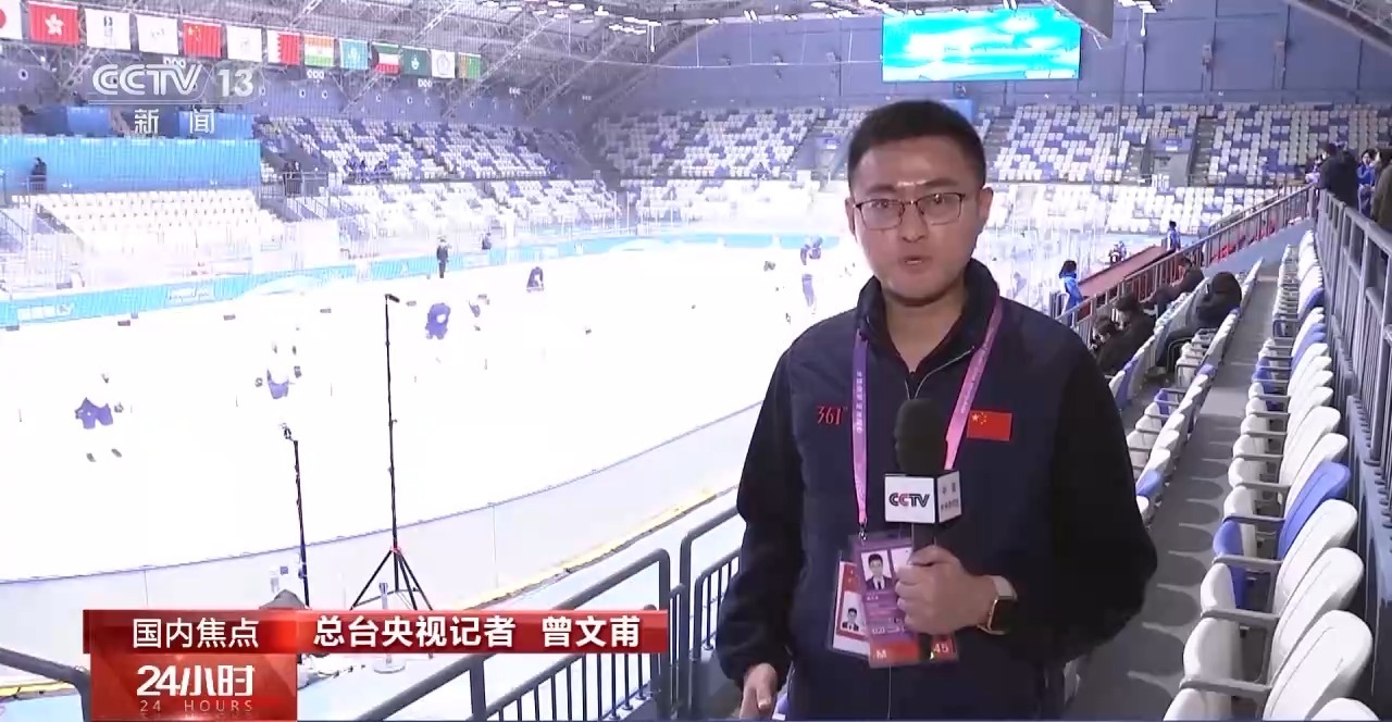 总台央视记者 曾文甫:这里是哈尔滨冰球馆。从2月3日开始,本届亚冬会的冰球项目就将在这里举行。届时,将会有来自亚洲14个国家和地区的冰球健儿在这里展开激烈角逐,为观众呈现一场场精彩绝伦的冰上竞技。