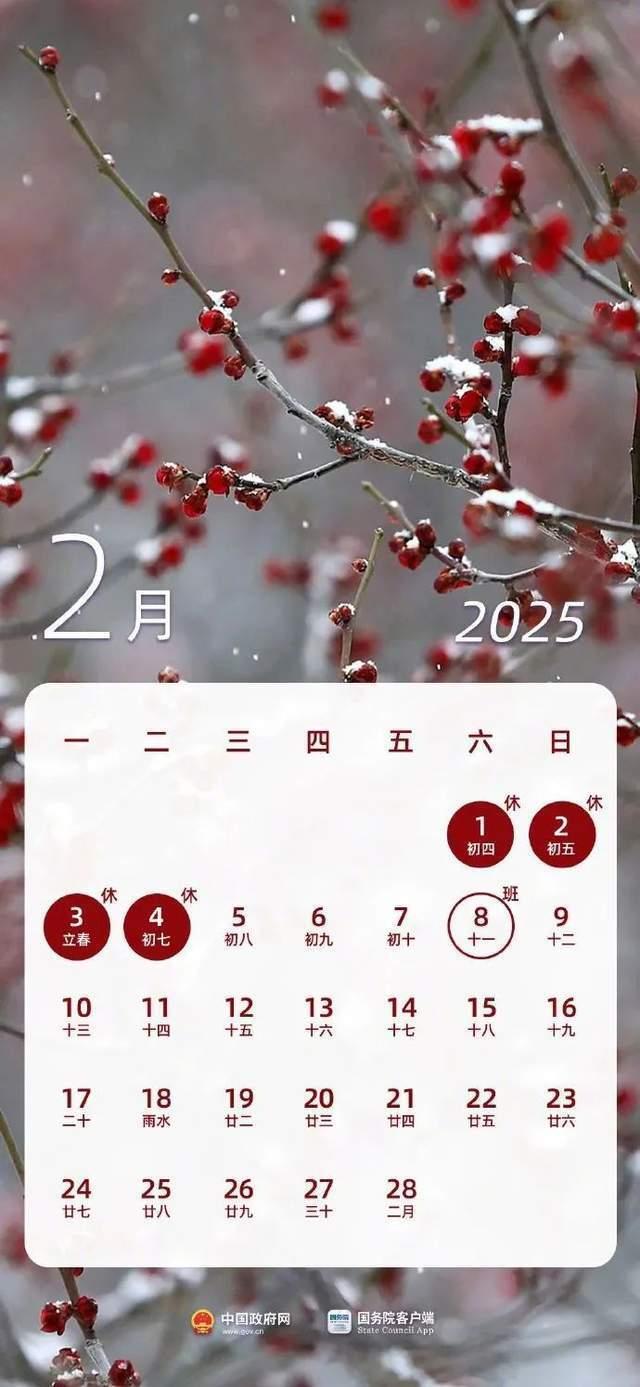 今天(2月4日)是初七。春节长假进入倒计时、不要忘记这周上班时间调整。根据放假安排,本周休2天,上4天,再休1天。注意,本周六(2月8日)要上班!