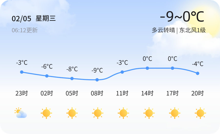 【AI天气】德州今日多云转晴气温低至-9℃ 市民出行请注意保暖