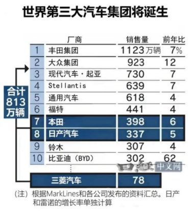 值得一提的是,按照2023年销量计算,若三菱汽车参与合并,三方形成的新集团销量将达到800万辆,超过韩国现代起亚集团成为世界第三大汽车集团。