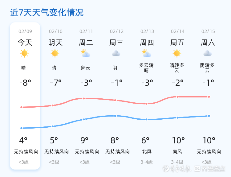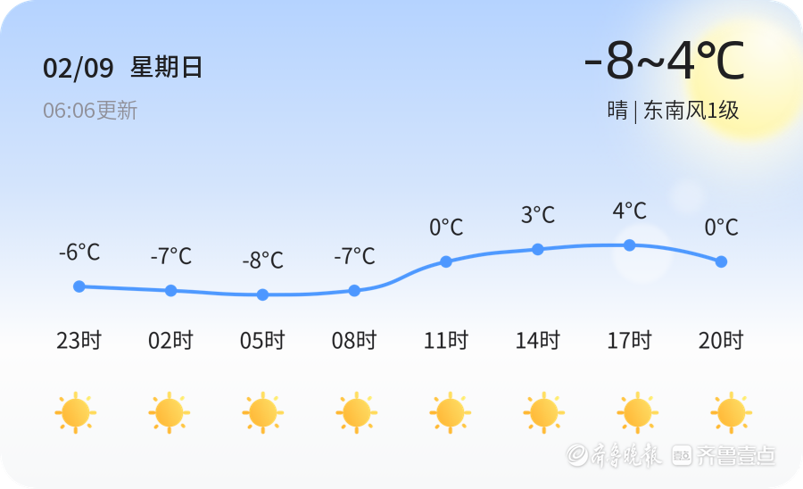 2025年2月9日,农历正月十二,聊城今日天气晴朗,气温在-8℃至4℃之间波动,东南风1级,空气湿度51%,.5浓度为58微克/立方米,全市各区均以晴朗天气为主,但早晚温差较大,市民需注意防寒保暖。
