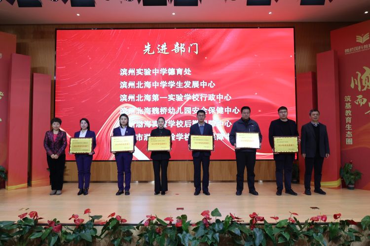 滨州市教育局党组成员、副局长李宗民最后讲话指出,魏桥国科教育集团作为滨州市基础教育改革试点项目的承接单位,以公益办学、公办托管的创新管理模式,通过夜以继日地探索,较好地展现了社会力量参与办学的示范引领作用:北海学区托管学校办学质量已跃升至全市第一方阵,出现了大量回流学生趋势,这为北海地区留住优秀人才、助力区域经济发展作出了教育的贡献;滨州实验中学教学质量稳步上升,在优质办学和人才培养方面有不少新思路新举措;两所新创的民办学校从零起航,短短两年多的时间便展现了强劲的发展趋势。成绩的取得,既是魏桥国科教育集团全体师生的智慧结晶,也是全市教育系统协同创新的生动体现。新的一年,希望坚定信心信念,锚定高质量发展新目标;聚焦主责主业,推动全市“八优八促”行动;顺应时代发展,构建集团化办学的教育生态圈;牢记为党育人、为国育才的使命,凭借久久为功、扎实苦干的优良作风,努力办好人民满意的教育,为加快建设品质滨州、奋力谱写中国式现代化最美滨州篇章持续贡献魏桥教育的力量。