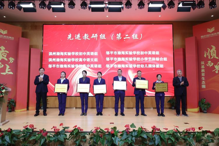 滨州市教育局党组成员、副局长李宗民,山东魏桥创业集团有限公司董事、副总经理张敬雷,滨州士平公益基金会秘书长朱北娜,北海经济开发区党工委副书记、党政办主任袁昊,滨州经济技术开发区党工委委员、组织部部长张滨,滨州经济技术开发区宣传和教育局党委书记、局长王立峰,北海经济开发区教体服务中心党总支书记、副主任李云鹏,邹平市教体局教育教学业务指导中心主任韩新刚,滨州魏桥国科教育集团理事长、总校长郑旭东等领导,以及集团各校(园)校长、园长,中层干部和获奖教师代表,教育集团全体员工参加会议。