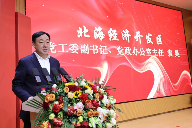 北海经济开发区党工委副书记、党政办主任袁昊致辞指出,自2021年集团托管北海两校以来,共同书写了教育发展的精彩答卷:中考升学率逐年提升,全市义务教育质量监测排名亦进步明显。今后双方将重点深化“三个协同”,管委会将全力做好政策、人才、环境三个方面的保障,为发展保驾护航。