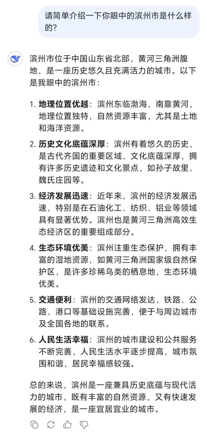 DeepSeek眼中的滨州是什么样的呢?