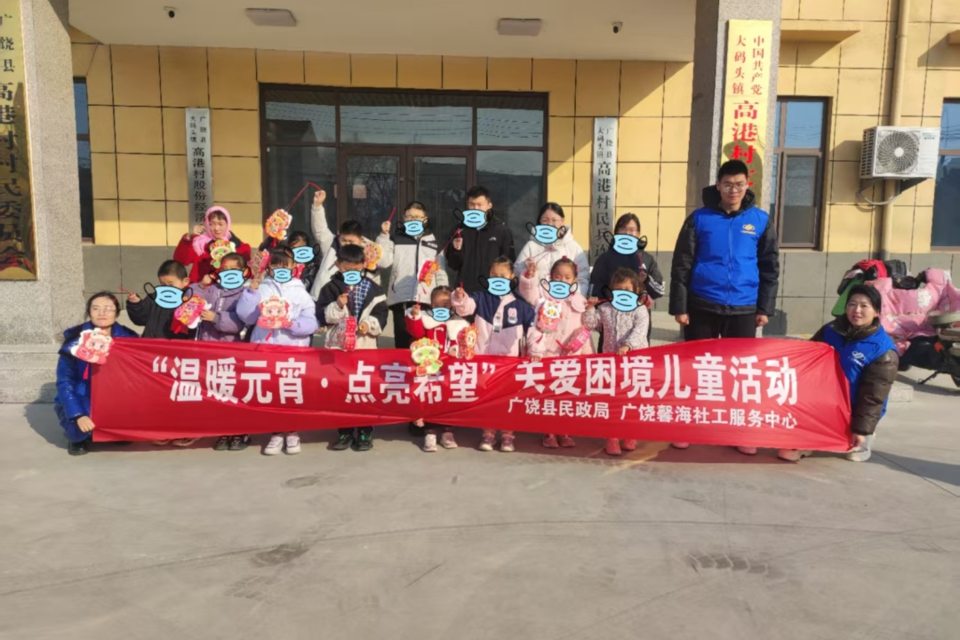 元宵节来临之际,广饶县民政局携手广饶馨海社会工作服务中心,走进大码头镇高港村,为困境儿童带来了一场充满爱与关怀的 “温暖元宵・点亮希望”活动,让孩子们在欢声笑语中感受到社会大家庭的温暖。