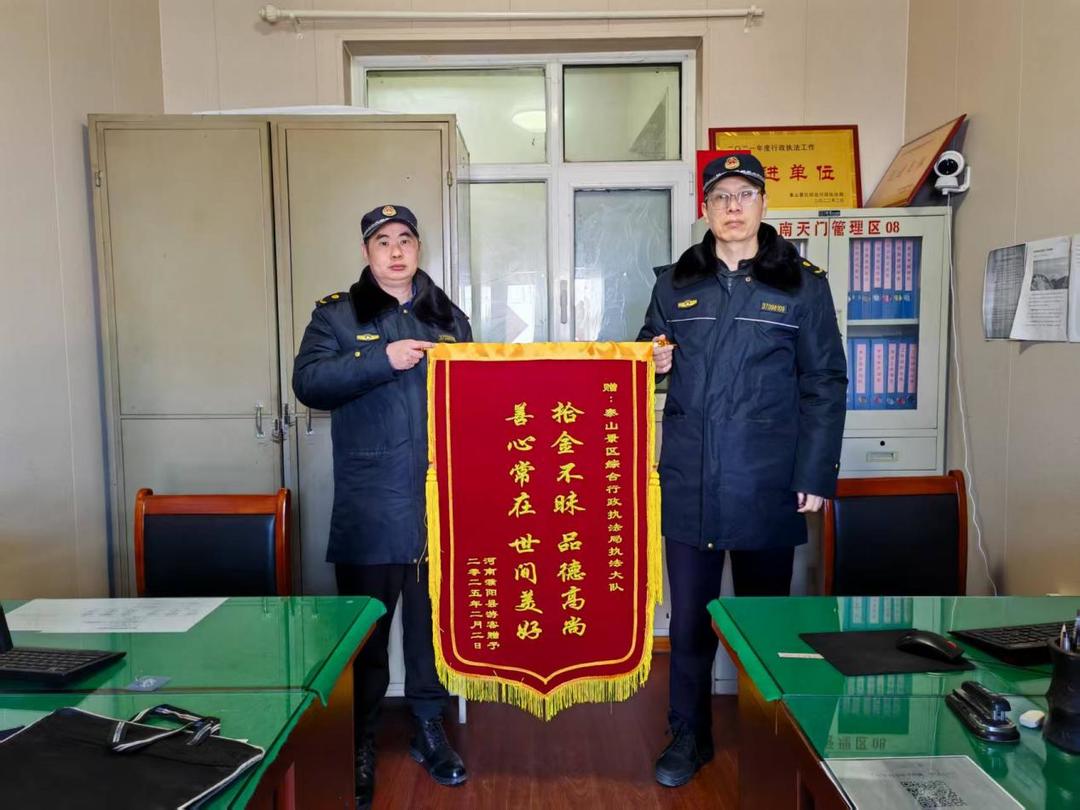 风霜中坚守显真情——泰山景区执法人员拾金不昧获锦旗