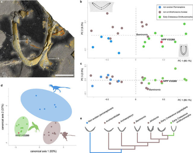 除发现八闽鸟外,研究团队还发现了一个单独保存的叉骨。研究结果显示,该叉骨与白垩纪的今鸟型类非常相似,而明显区别于政和八闽鸟,以及其他侏罗纪鸟类和恐龙。如果该叉骨的确属于今鸟型类,那么今鸟型类的起源时间将会进一步提前——从此前认为的1.3亿年前,提前至1.5亿年前。