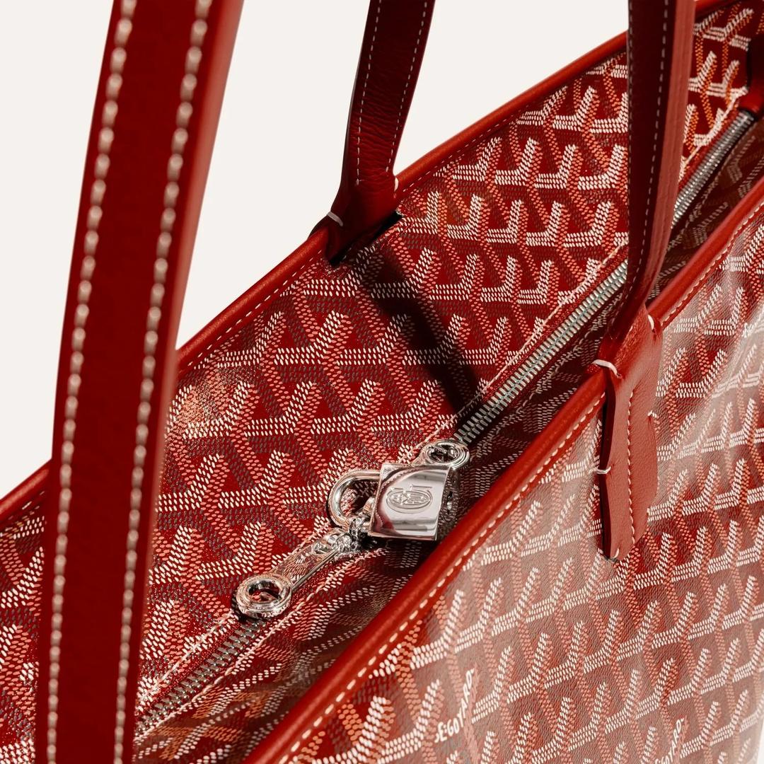 标志性Goyardine帆布和可完全合上的全缝制拉链翻盖增强了托特包的安全性;包袋底部边缘带有皮革衬垫,四个包角以优质小牛皮加固,将法式优雅与浪漫精神融入设计。
