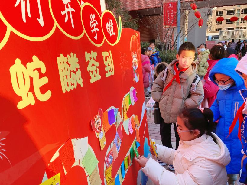 为迎接新学期,激发师生奋斗热情,厚植爱国情怀,2月13日,济南市天桥区云世界实验小学举行了主题为 “灵蛇献瑞启云程 少年有志破苍穹” 的2025年春季开学典礼。校园装扮一新,洋溢着浓厚的开学氛围,学校领导、老师早早等候在校门口,热情迎接同学们的归来。