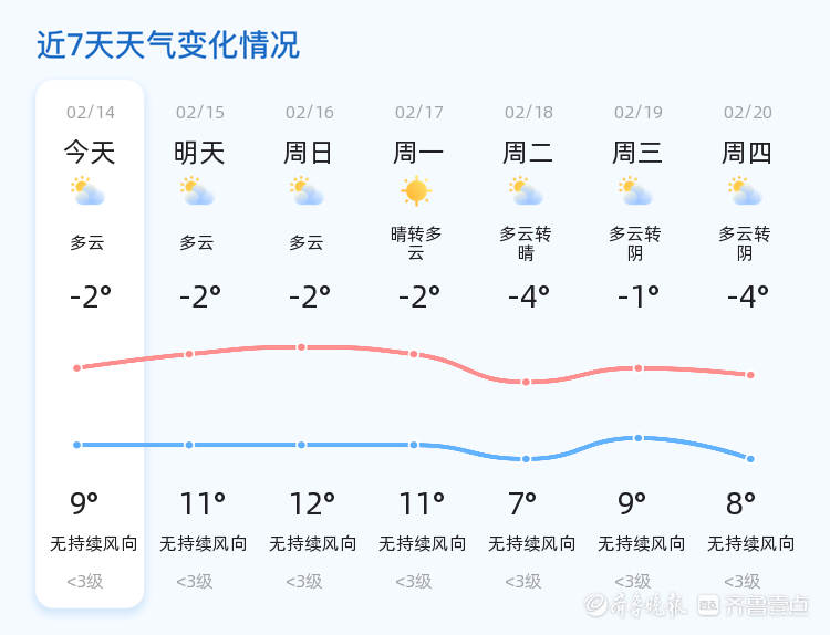泰安情人节多云气温适宜,未来三天天气平稳适宜出行