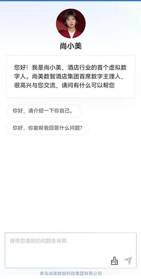 最新消息,总部位于青岛的尚美数智酒店集团正式宣布接入DeepSeek大模型,成为酒店行业首家引入该先进技术的企业。据悉,DeepSeek大模型将率先接入集团虚拟数字人“尚小美”,以“尚小美”身份与用户进行交互,旨在借助DeepSeek强大的自然语言处理与深度学习能力,全方位提升酒店数智化软硬件水平,为用户带来更优质的体验。