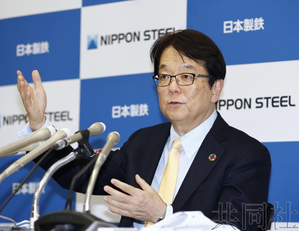 6日下午,日本制铁公司副董事长森高弘在东京都千代田区召开记者会。