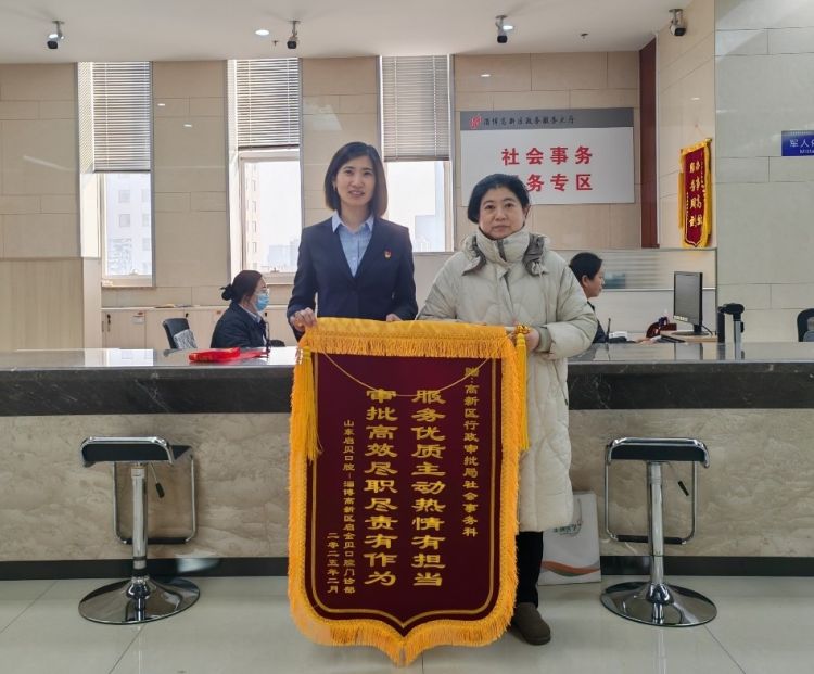 业务办结后,启金贝口腔门诊为淄博高新区审批效率很满意,为社会事务科赠送锦旗表示感谢。