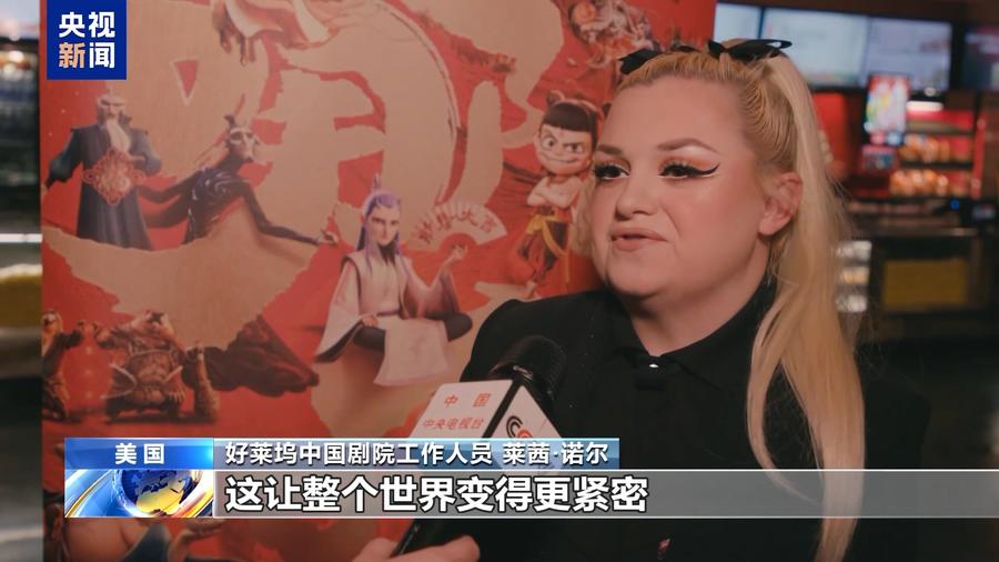 美国观众 美琳:动画效果非常好,整个电影让我笑中带泪。《哪吒2》这部电影引发了我对中国神话的浓厚兴趣,能看到如何把神话故事通过动画电影反映到现实中,这非常棒。