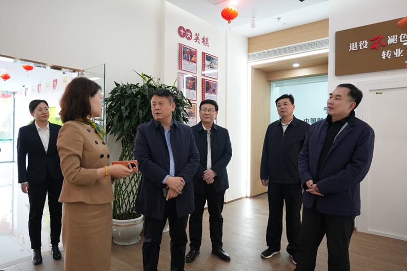 调研组在邮储银行枣庄市分行退役军人服务驿站
