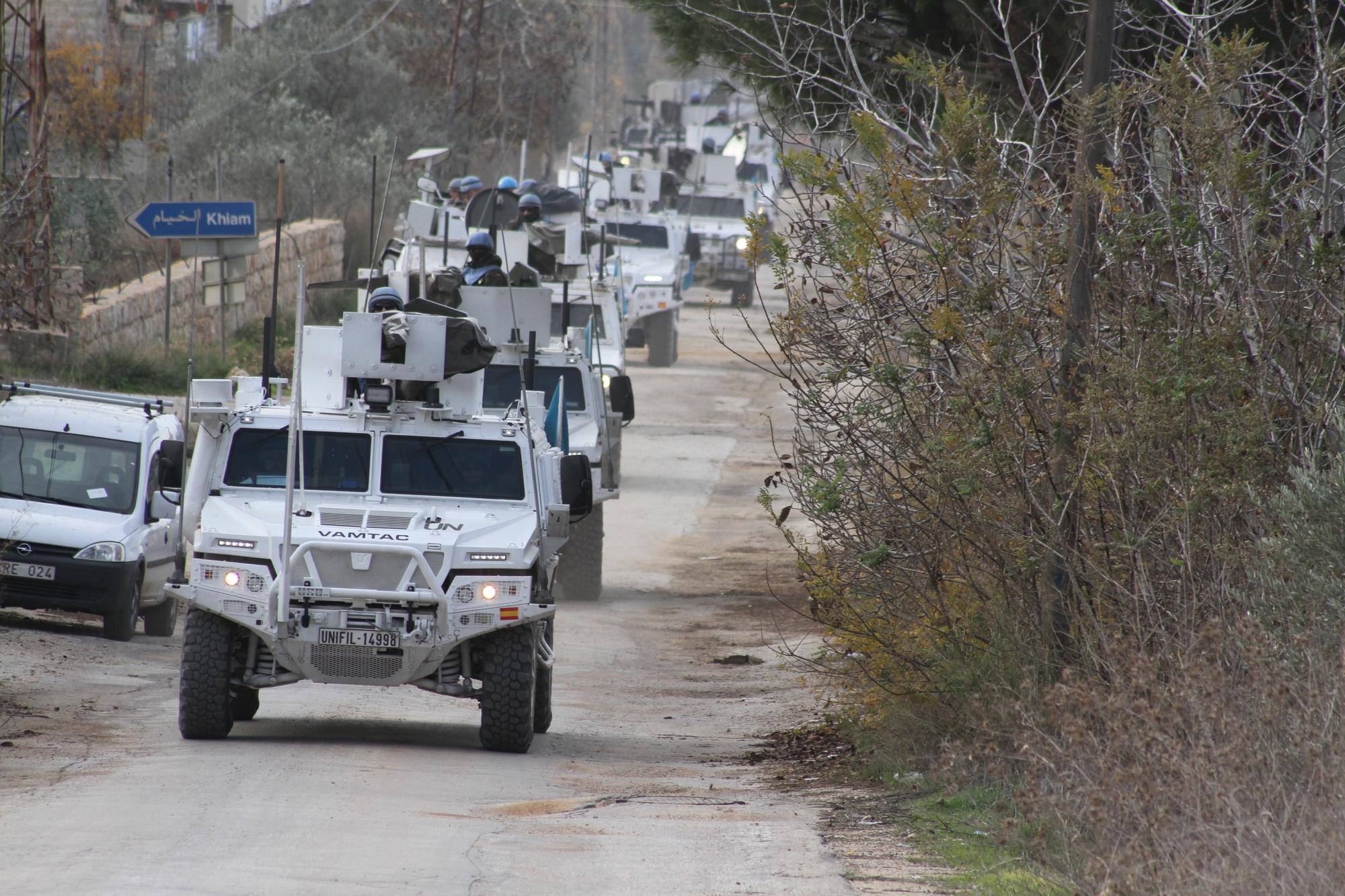 这是2024年12月12日在黎巴嫩希亚姆地区拍摄的联合国驻黎巴嫩临时部队车辆。新华社发(塔希尔·阿布·哈姆丹摄)