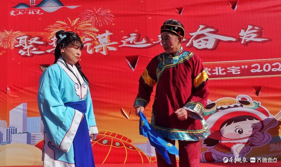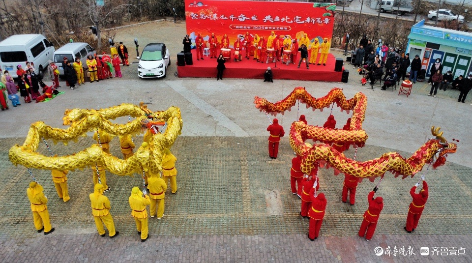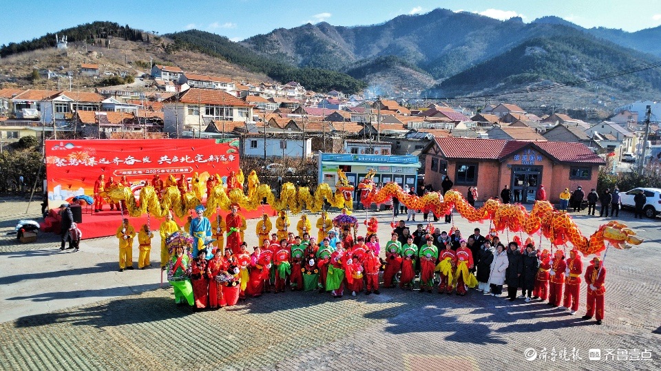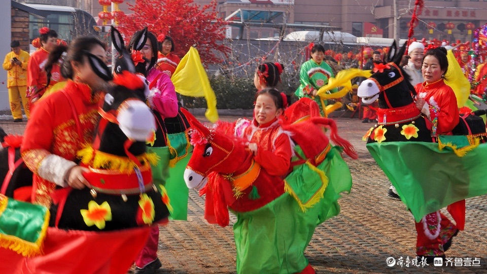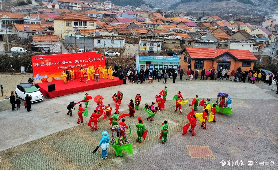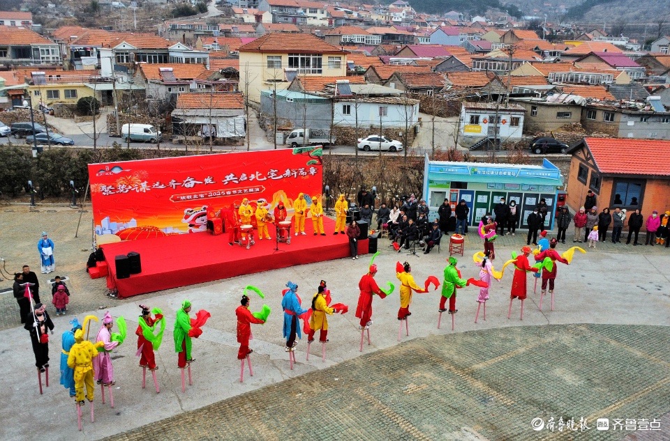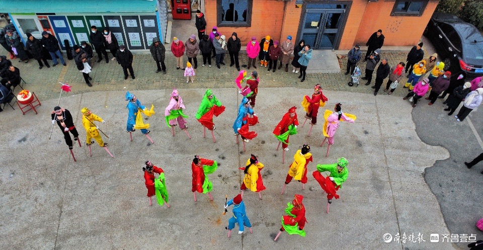 正月里,青岛北宅周哥庄里,北宅柳腔、舞龙、高跷、秧歌等乡村非遗表演齐上阵,喜迎新春的到来。 董志刚 摄