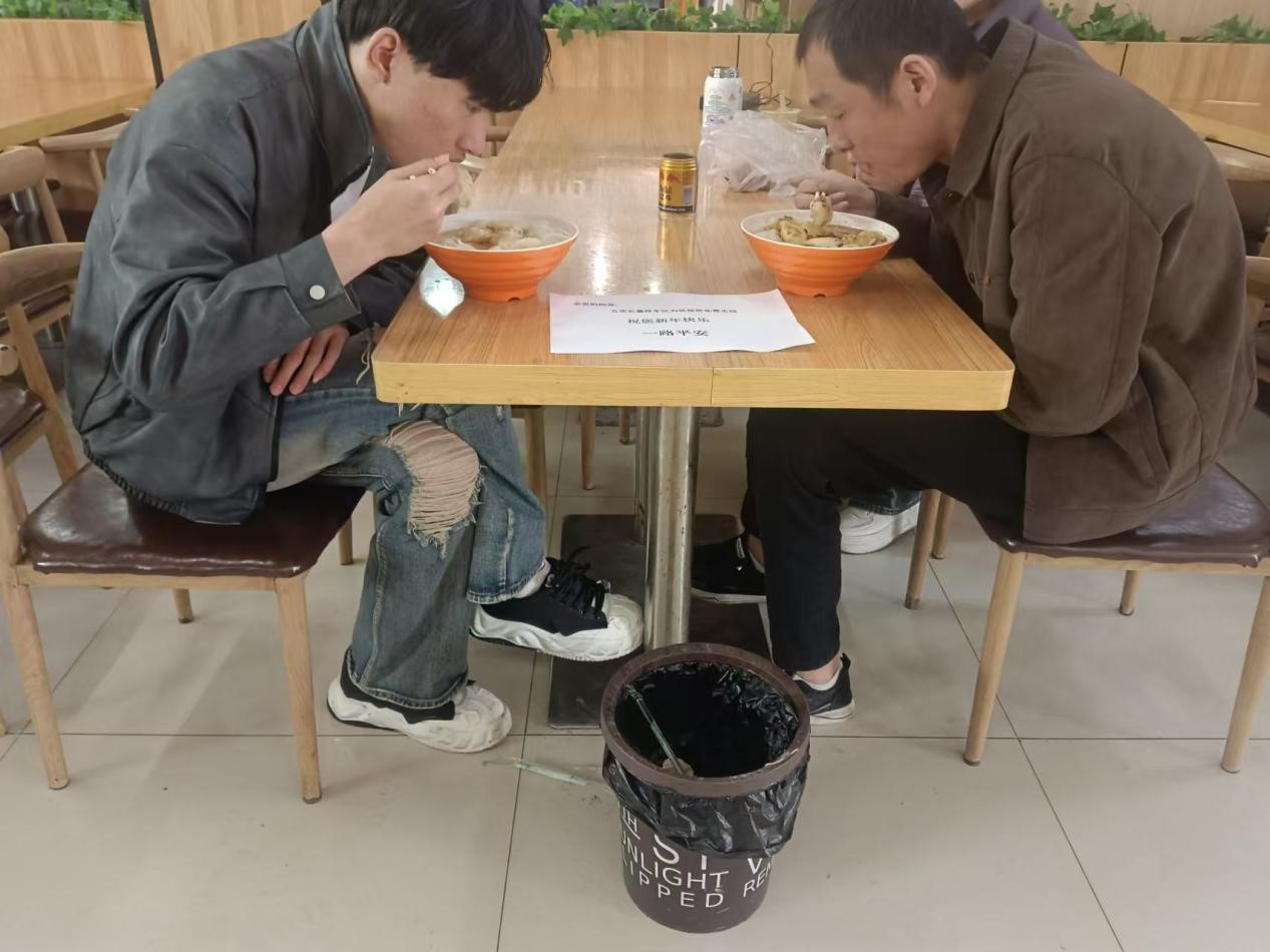 拿到水饺的旅客们,脸上满是惊喜与感动。有的旅客大口吃着,还不忘竖起大拇指称赞;有的带着孩子,一家人围坐在一起,共享这顿特别的“团圆饭”。小小的水饺,不仅驱散了冬日的寒冷,更让离家的游子们在旅途中感受到了浓浓的年味和关爱。这个春节,五里长寨停车区用一碗碗水饺,架起了温暖的桥梁,让返乡之路充满温情。