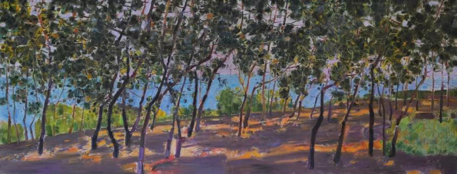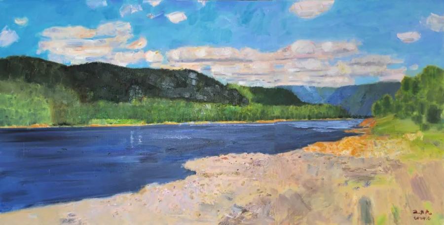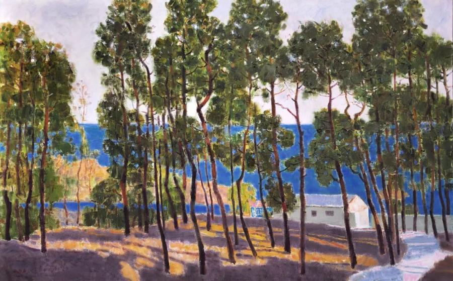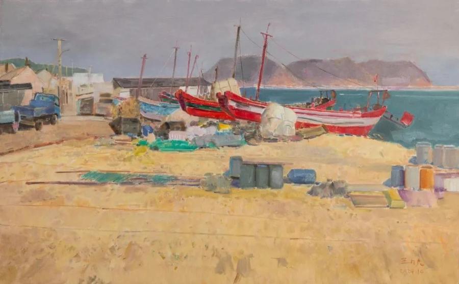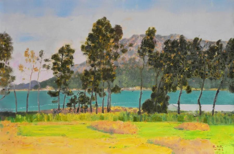自然景观的诗性叙事,从乡野到海洋的审美嬗变。王力克的风景创作涵盖乡野、山湖、海洋等多元主题,每一类题材都承载着特定的文化隐喻。其创作历程体现了从“形式秩序”向“审美逻辑”的转型。早期作品注重室内的造型研究,以严谨的构图与细腻的质感展现学院派的扎实功底。而近年来的写生实践则更强调“行旅”对创作的催化作用。通过流动的线条传递自然的生命力,将写生从“再现”升华为“心象”的投射。这种“以行载道”的创作观,既是对山东艺术学院美育传统的继承,也是对当代艺术教育的启示,将风景画从个人表达扩展为时代精神的载体。