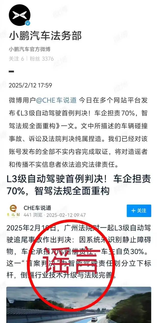小鹏汽车:造谣“L3级自动驾驶首例判决”的主要嫌疑人已到案