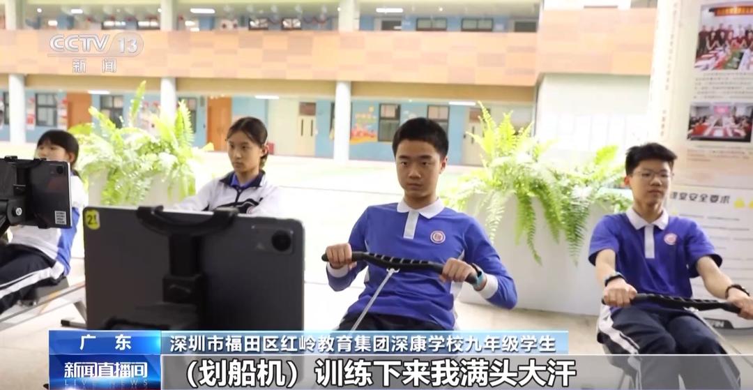深圳市福田区红岭教育集团深康学校九年级学生:划船机训练下来我满头大汗,而且明显可以感受到我的上肢力量有爆发式增长的感觉。
