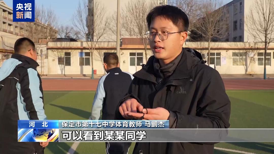 保定市第十七中学体育老师 马鹏杰:现在有AI ,还有一些智能设备,能够实时监测学生的心率。老师会有一个平板,可以看到某某同学心率是多少,这确实给我们提高了很大的效率。