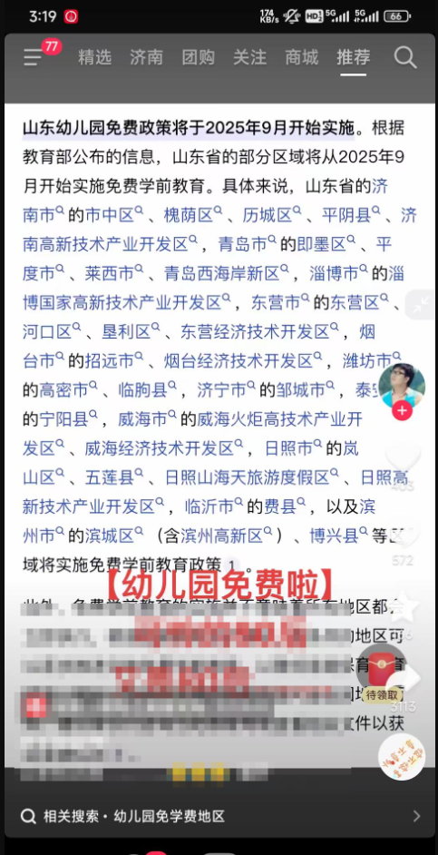 最近一段时间,“山东省的部分区域将从2025年9月开始实施免费学前教育”在多个短视频及社交平台流传,引发网友广泛关注。网传信息多以“教育部公布的消息”为开头,称山东省的部分区域将从2025年9月开始实施免费学前教育。