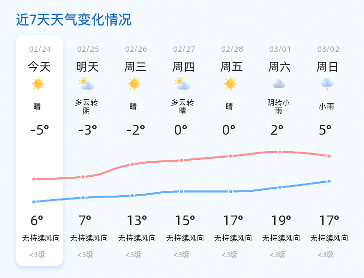 展望未来三天,泰安天气整体呈回暖趋势。周三至周五,泰安将以晴朗或多云天气为主,气温逐日攀升,最低气温从-2℃逐渐升至0℃,最高气温则有望突破15℃,达到17℃。随着气温回升,市民户外活动增多,建议做好防晒措施,同时注意补充水分。周六起,天气将转为阴有小雨,市民出行需携带雨具,以防雨水打湿衣物。