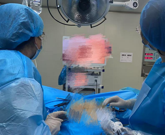 面对患者的复杂病情,医院高度重视,迅速组织了多学科专家会诊。经过深入讨论和综合分析,医院决定为患者实施宫腹腔镜联合手术,由经验丰富的常复华医生主刀。手术当日,常复华医生带领团队成员严格遵守无菌操作,首先通过腹腔镜对杨女士的盆腔进行了全面探查,仔细分离了粘连的输卵管和盆腔组织,同时切除了左侧输卵管系膜囊肿,通过宫腔镜对双侧输卵管进行了进一步的疏通和治疗,确保了输卵管的通畅性。术中发现患者盆腹腔重度粘连、双侧输卵管及卵巢周围广泛粘连,为了防治术后再次出现粘连情况导致不孕,使用了最新生物防粘支架,彻底保障了输卵管的畅通性。经过三个小时的紧张手术,手术终于圆满结束。