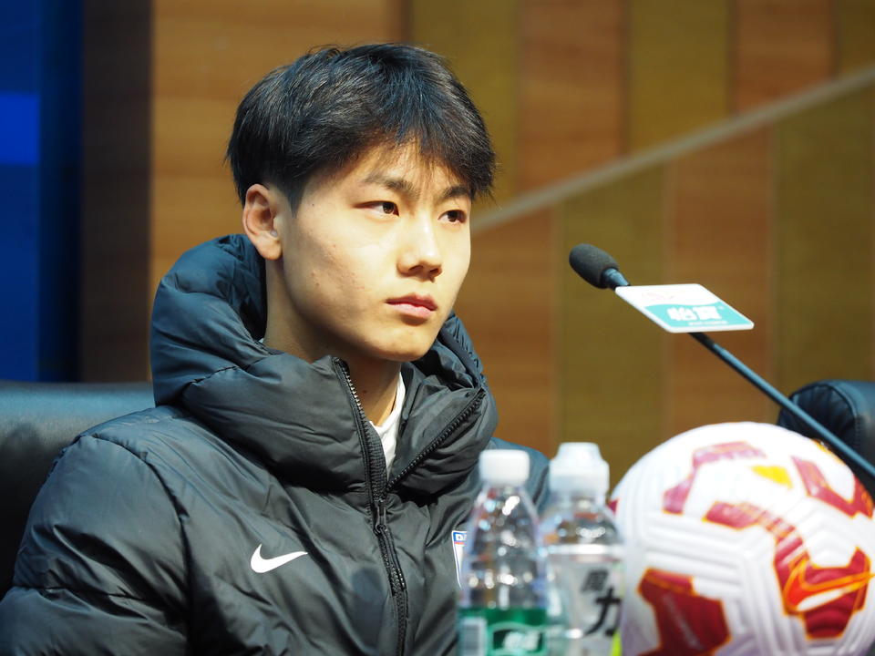 2月27日,济南奥体中心,中超第二轮,山东泰山VS大连英博客队赛前新闻发布会举行,大连英博主教练李国旭和队员毛伟杰出席了发布会。