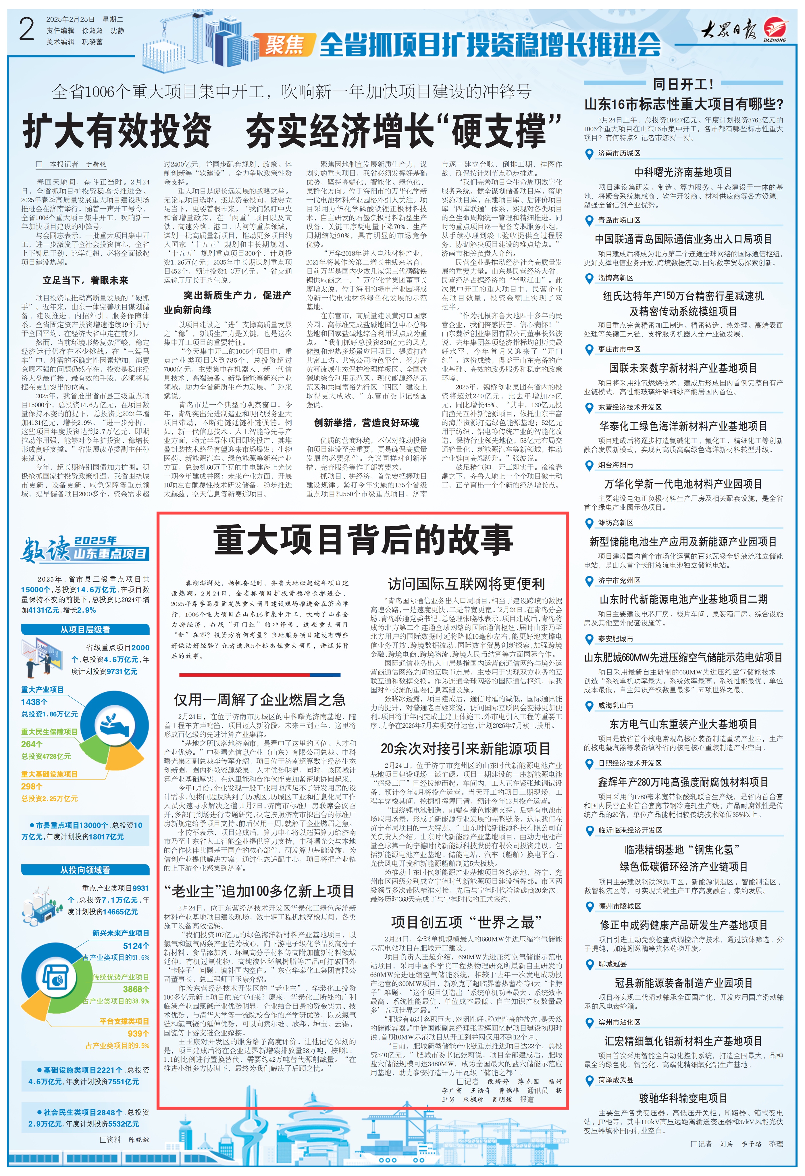 2月25日,2版要闻刊发《重大项目背后的故事》,报道2月24日,全球单机规模最大的660MW先进压缩空气储能示范电站项目在肥城开工建设。详情点击这里——《重大项目背后的故事》