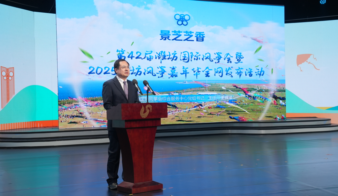纸鸢传信邀天下,潍水欢歌候君临。2月28日,景芝芝香·第42届潍坊国际风筝会暨2025潍坊风筝嘉年华全网发布活动在山东广播电视台举行。本届风筝会暨风筝嘉年华以“放飞梦想 拥抱和平”为主题,将于2025年4月19日在世界风筝公园盛大开幕,风筝赛事、文旅宣推、风筝文化、体育运动、经贸合作等56项系列活动陆续开展。发布活动现场对本届风筝会暨风筝嘉年华的主要活动、开幕式亮点、世界风筝公园筹备情况等进行介绍,推介潍坊旅游资源和精品路线,并发布风筝会推广曲和吉祥物。