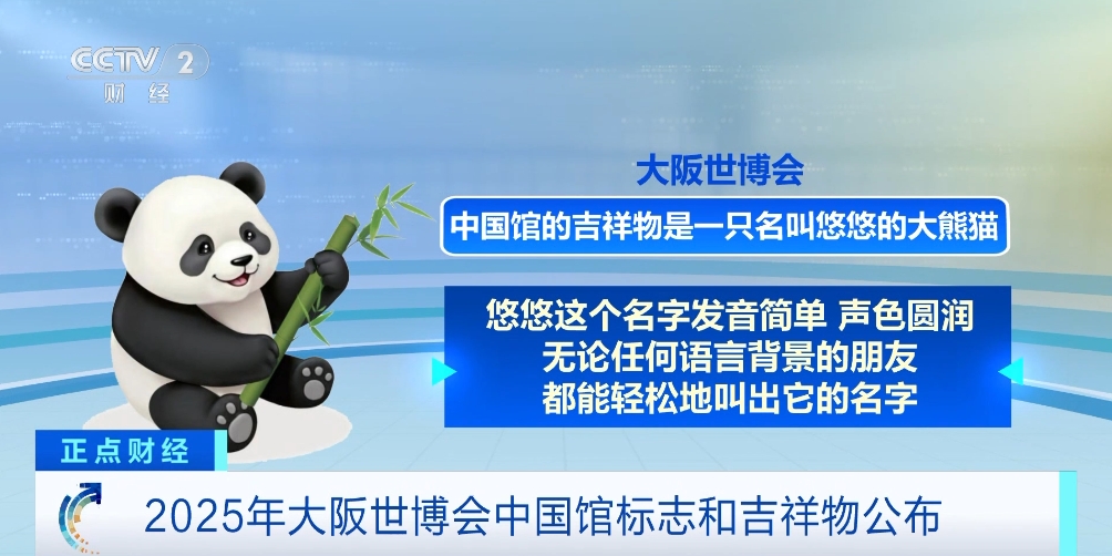 大阪世博会中国馆的吉祥物是一只名叫悠悠的大熊猫。悠悠这个名字发音简单,声色圆润,无论任何语言背景的朋友都能轻松地叫出它的名字。同时这个名字还蕴含着“时光悠悠”“竹韵悠悠”“萌趣悠悠”“真情悠悠”的意思。