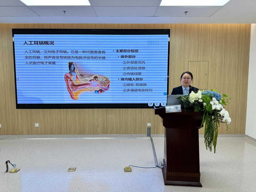 随后,该院耳科主治医师傅莹带来了一场生动的科普讲座。她以通俗易懂的语言,将复杂的医学原理转化为生活智慧,让观众直观了解到:“人工耳蜗如同声音解码器,将声波转化为电信号直接刺激听神经。”这一形象的比喻,让在场的家长和孩子们对人工耳蜗有了更深入的了解。