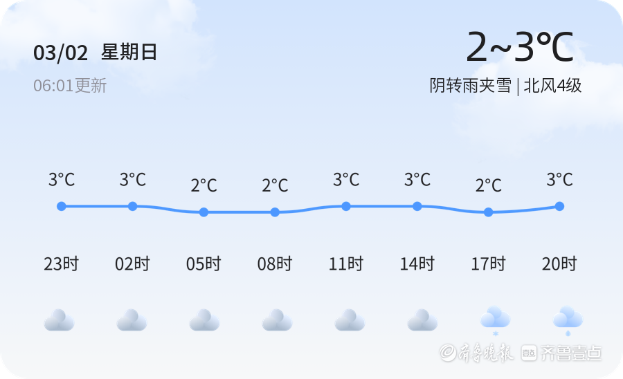 未来三天,烟台的天气将持续多变。3月3日,烟台将迎来雨夹雪天气,气温维持在2℃至3℃之间,东北风4-5级,市民需继续做好防寒保暖工作。3月4日,天气转为阴转雨夹雪,风力依旧强劲,气温略有回升,但最低气温将降至1℃,市民在出行时应特别注意安全。特别提醒,受强冷空气和气旋共同影响,烟台多地已发布寒潮和大风预警信号,请市民密切关注天气变化,提前做好防范。