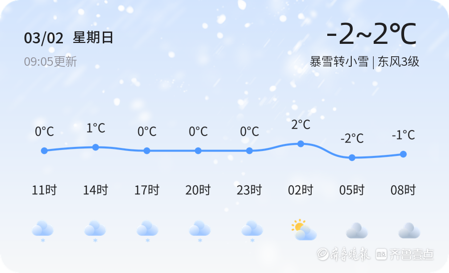 今天是2025年3月2日,农历二月初三,济南天气迎来暴雪转小雪,气温在-2℃至2℃之间徘徊,东风3级,空气湿度高达98%,空气质量良好,PM2.5指数为25,属于优等级。路面积雪和结冰将对市民出行造成一定影响,建议市民尽量减少不必要的外出,如必须出行,请做好防寒保暖措施,穿戴防滑鞋,注意交通安全。