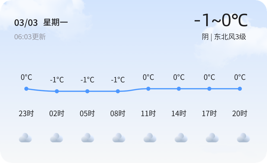 今天是2025年3月3日,农历二月初四,东营天气以阴天为主,气温在-1℃至0℃之间徘徊,东北风3级左右,空气湿度64%,空气质量良好,PM2.5指数为35,属于优等级。天气阴冷,市民外出请注意保暖,携带雨具,尽量避免长时间户外活动。驾驶时请注意能见度,确保行车安全。
